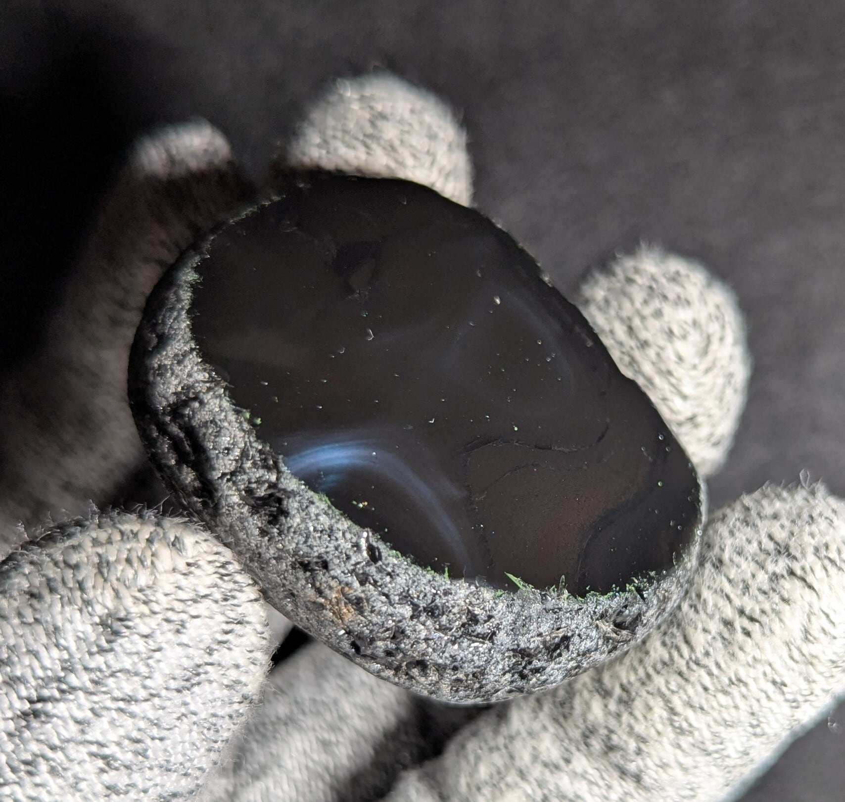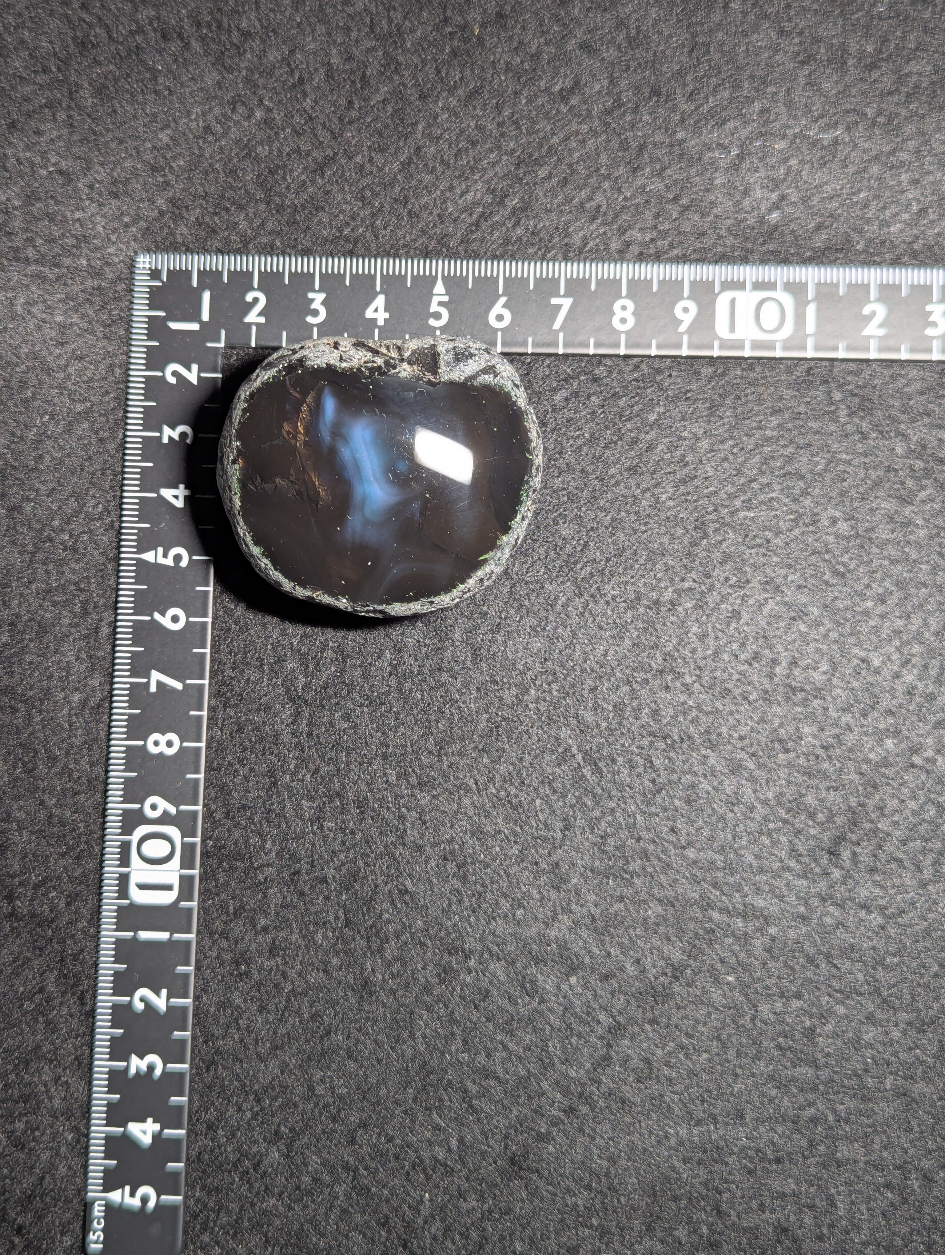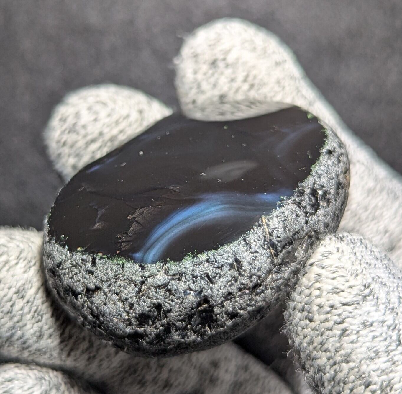 学名は“レインボーオブシディアン”。その中でも、ここまで鮮やかで透明感のある青を宿す個体は極めて稀少です。